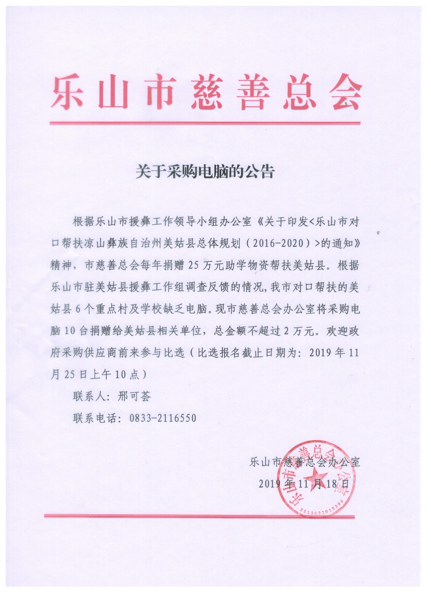 时间: 2019-11-22 来源: 乐山市慈善总会 次浏览