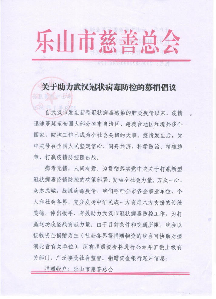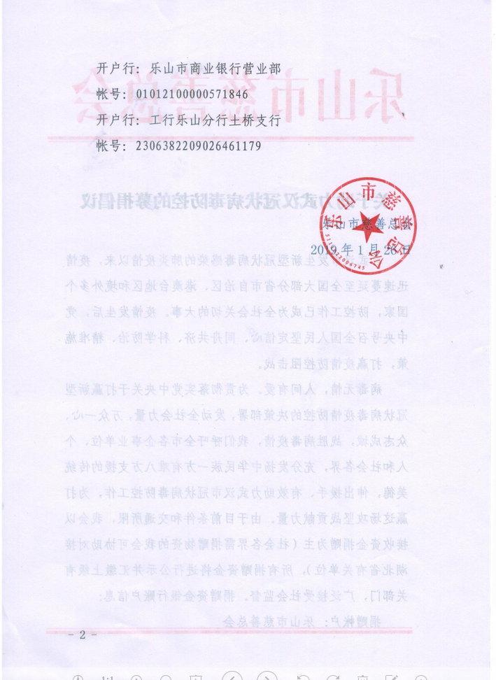时间: 2020-01-26 来源: 乐山市慈善总会 次浏览