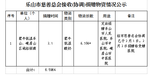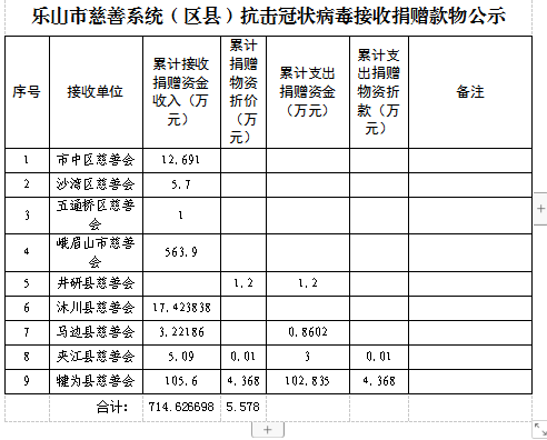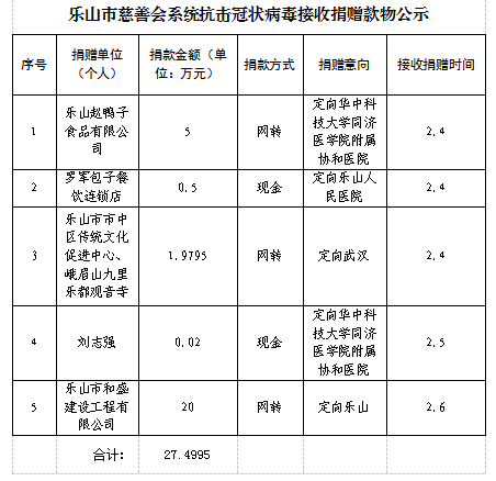 乐山市慈善总会关于抗击冠状病毒捐赠款物的公示(2)