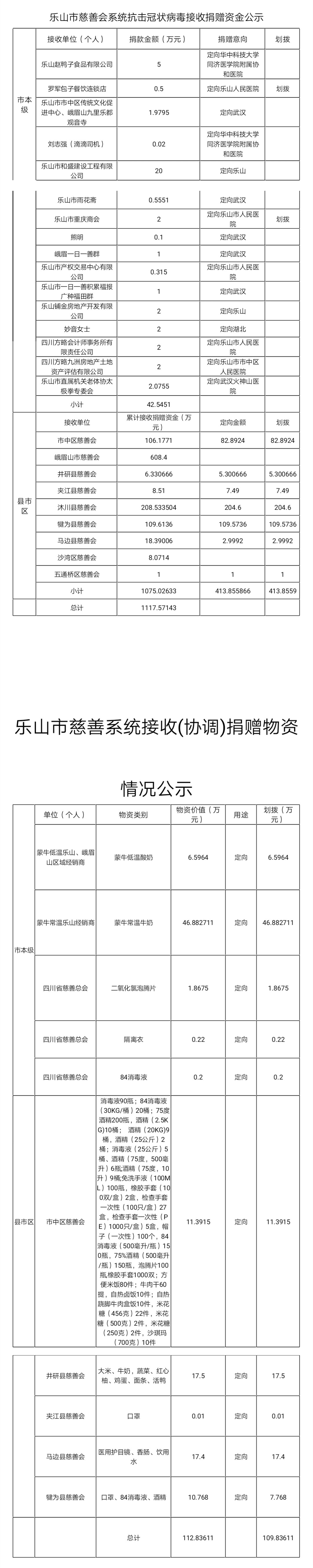 乐山市慈善总会关于抗击冠状病毒捐赠款物的公示(9)