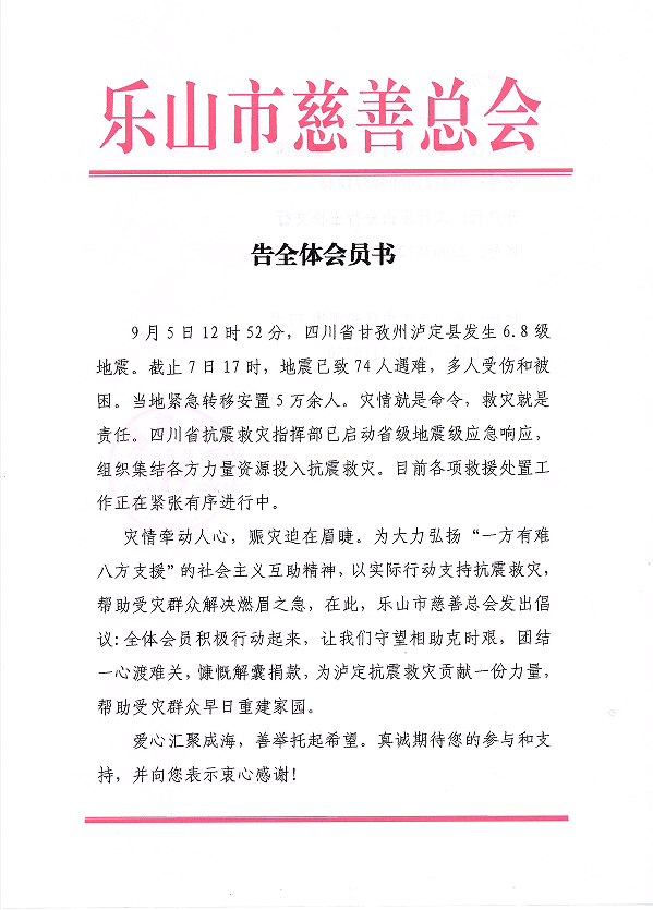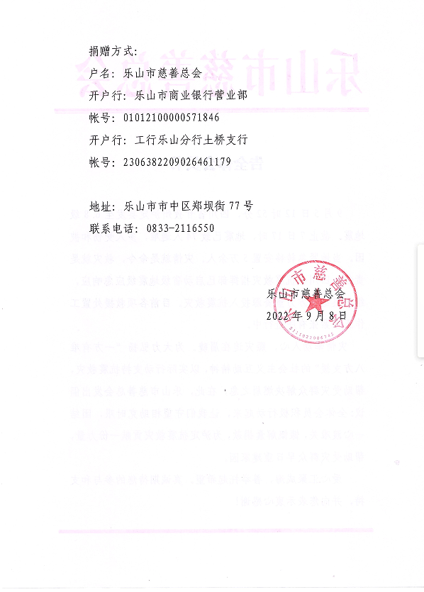 时间: 2022-09-08 来源: 乐山市慈善总会 次浏览