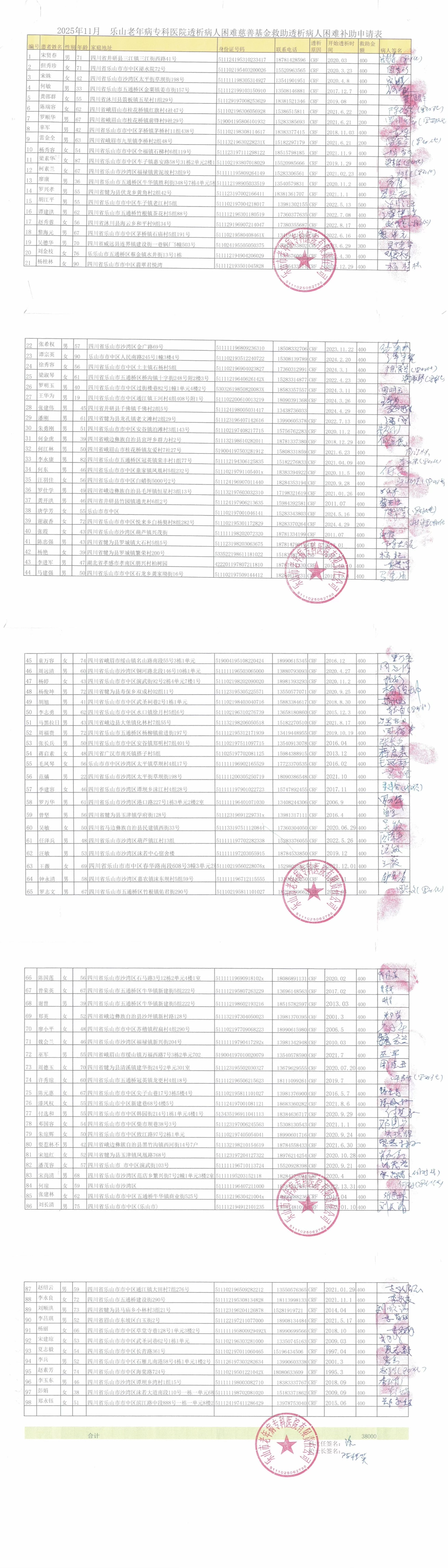 乐山市老年病专科医院透析病人困难慈善基金救助公示(2025年11月)